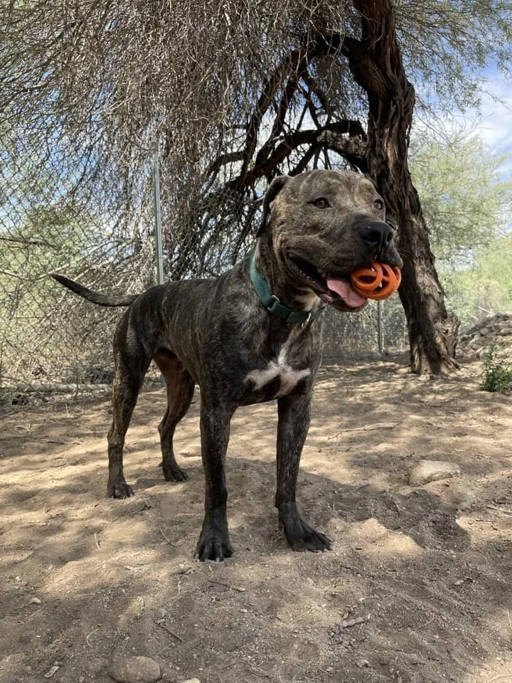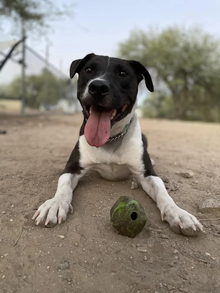 Beckham is a 6 year old Pitbull Cattle dog cross. He came to us after the tragic loss of his previous owner. Beckham is a spunky stocky boy who loves to play fetch and run on the treadmill. He is an avid lizard and bird “hunter” and he cannot resist a game of flirt pole. Beckham has been through a lot and can take time to warm up to new people. We have been exploring more opportunities to have Beckham socialize with new people and so far so good, but until we have a more clear picture of his behavior he is currently unavailable for adoption. Eventually our hope is to find him someone committed to going slow with him, and ultimately training with us to give them all of the methods and tools to set them up for success.