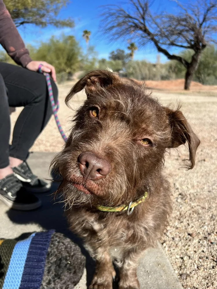 Shai is a 3 year old Pitbull Poodle mix who has become one of our favorite errand buddies. He trots along on leash at a nice steady pace past all kinds of distractions with little to no interest. He’s also great in the car so if you need a little adventure buddy, this might be the low rider baby you’ve been looking for. Shai is crate trained, and does well in terms of house breaking when kept on a schedule. He has done well with dogs smaller and larger than him, but he can be pushy. If you have dogs that don’t appreciate another pup putting their paw down when they’ve had enough this might not be the best fit. We love this little dude and can’t get over how much personality he’s got.